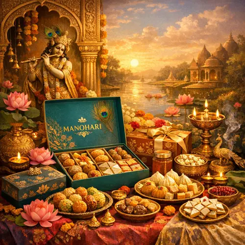 At MANOHARI, sweetness is not just a flavor it’s an experience, a story, and an emotion. We go beyond crafting traditional sweets; we curate soulful moments steeped in culture, love, and artistry. Every piece of mithai is a tribute to India’s rich heritage, handcrafted with precision, wrapped in elegance, and delivered with purpose. From the divine inspirations of Lord Krishna to the age-old recipes passed down through generations, we infuse every creation with a sense of reverence and grace. Our commitment to using premium ingredients, traditional techniques, and personalized presentation ensures that each gift box becomes a meaningful gesture whether it’s for a festive celebration, a family milestone, or a quiet moment of indulgence. With MANOHARI, you’re not just savoring sweets you’re reliving cherished memories, connecting with your roots, and sharing a piece of your heart.